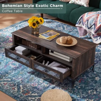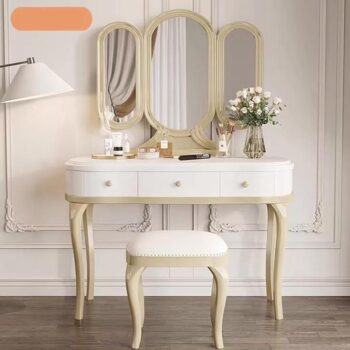 Elegant Solid Oak Wood Dressing Table Set with Mirror and Stool – Rustic Modern Moroccan Style Vanity