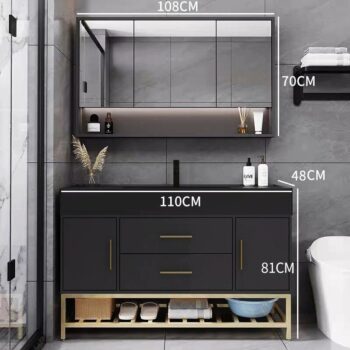 Modern Minimalist Black Oak Bathroom Vanity Cabinet with Mirror Light