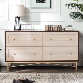 Contemporary 4-Drawer Wood and Metal Chest with Gold Accents, 56 Inch