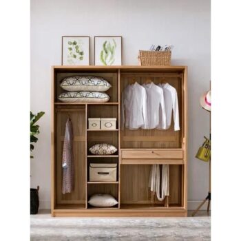 Elegant Oak Japanese-Style Wardrobe with Sliding Doors and Storage
