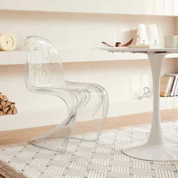 Modern Minimalist White Plastic Dining Chair – Space Saving, Ergonomic Design