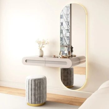 Elegant Birch Wood Hanging Makeup Table with Smart Mirror