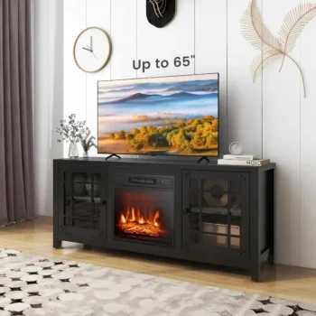 65-Inch TV Stand with Built-in Electric Fireplace and Remote Control