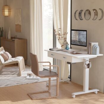 Electric Adjustable Height Standing Desk with Dual Drawers and Mobile Casters