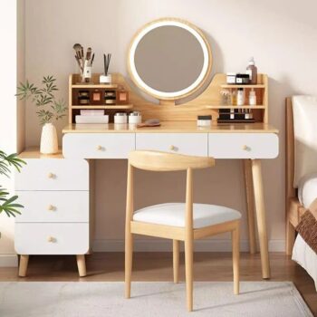 Elegant Modern Dressing Table with Mirror & Stool – Minimalist Makeup Organizer & Study Desk
