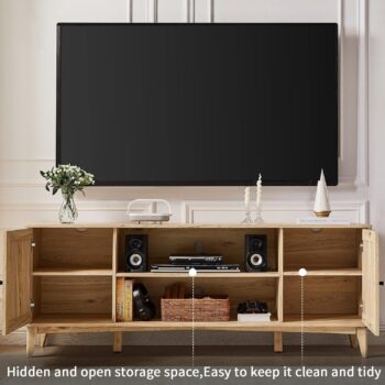 Boho-Chic Oak Wood TV Stand with Storage for 75+ Inch TVs