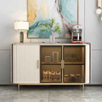 Luxury Modern Minimalist Sideboard with Transparent Doors and High-Temperature Resistant Countertop