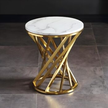 Luxury Marble Round Coffee Table with Gold Stainless Steel Base