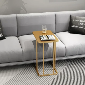 Marble-Textured Wood MDF Coffee Table with Stainless Steel Frame