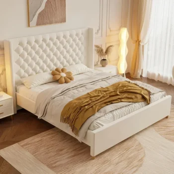 Deluxe Velvet Queen/King Size Wood Frame Bed – Elegant & Comfortable Bedroom Furniture