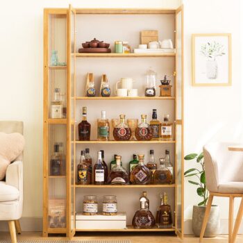 Elegant Modern Metal Wine Cabinet with Glass Holder and Refrigerator Storage