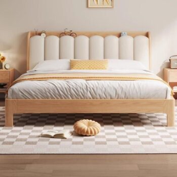 Luxury Twin Wood Raised Bed – Minimalist Modern Queen Size Floor Bed with Frame