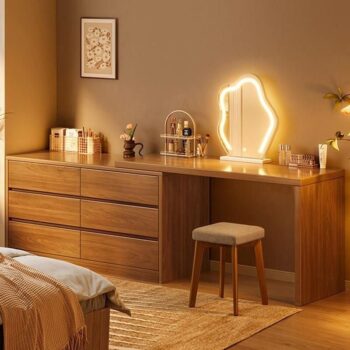 Elegant Brown Vanity Desk – Modern Minimalist Bedroom Dresser