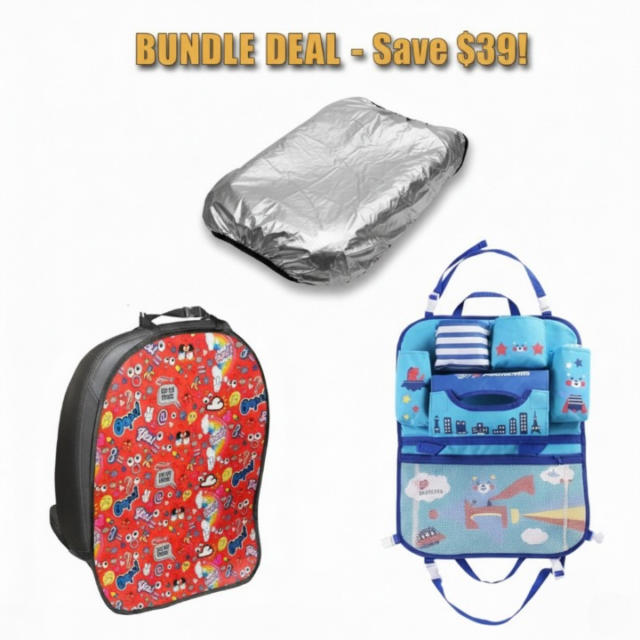 Get everything you need for comfortable and organized car travel with kids—all in one incredible bundle at an unbeatable price! The Car Travel Kids Organization Bundle is your complete solution for keeping your car clean, protected, and entertainment-ready on every journey, from daily commutes to long road trips. This comprehensive 3-in-1 set transforms your back seat from chaos to calm instantly.
