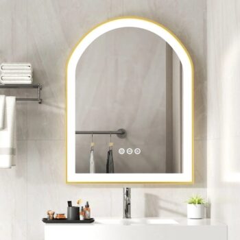 24″x36″ Arched LED Bathroom Mirror – Anti-Fog, Dimmable, Gold Frame
